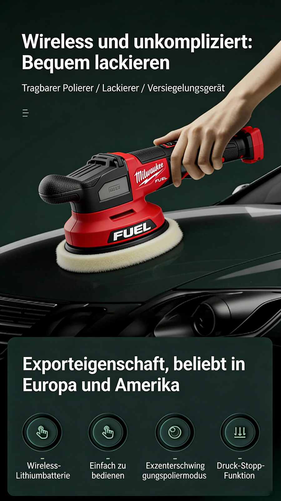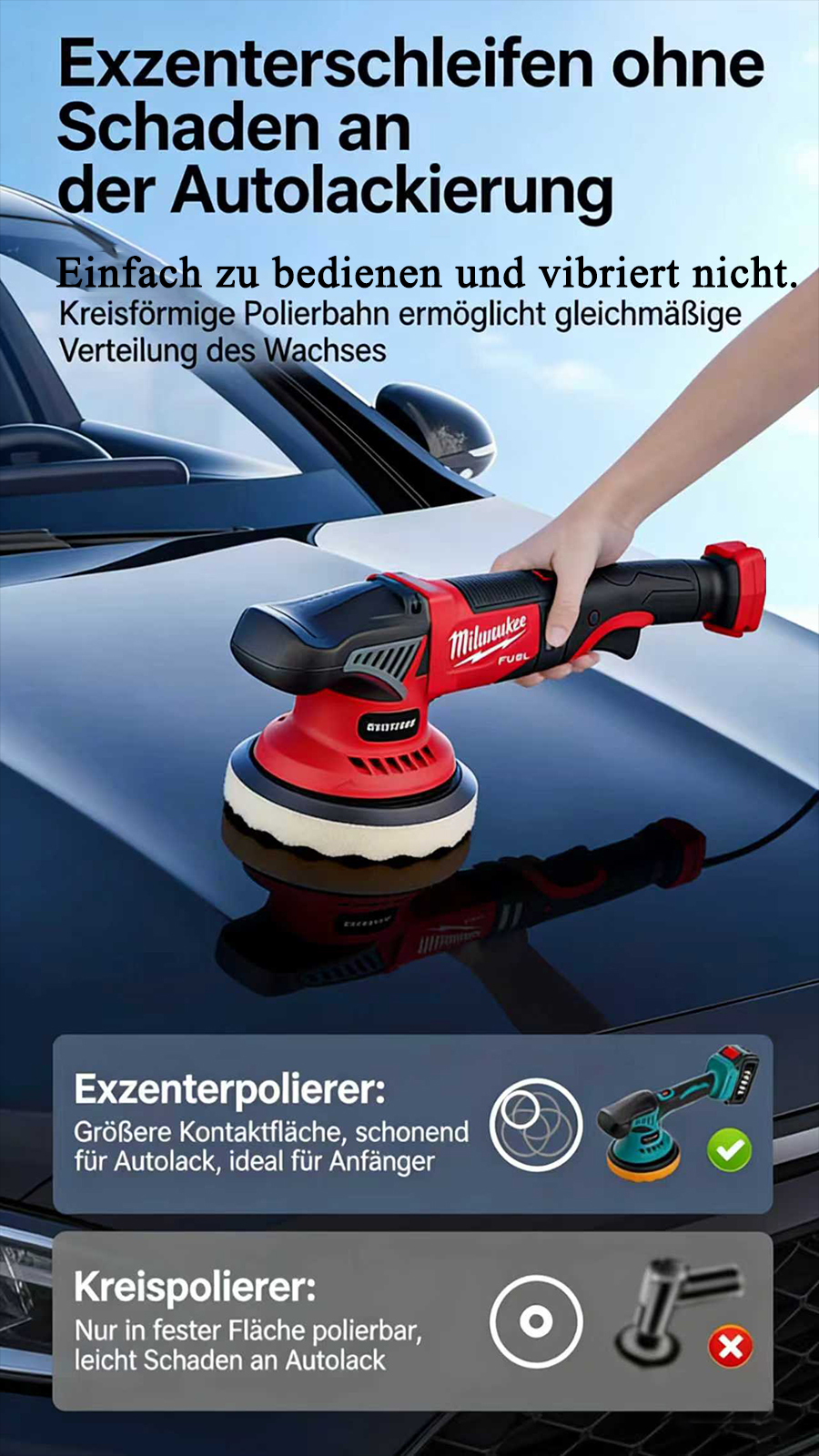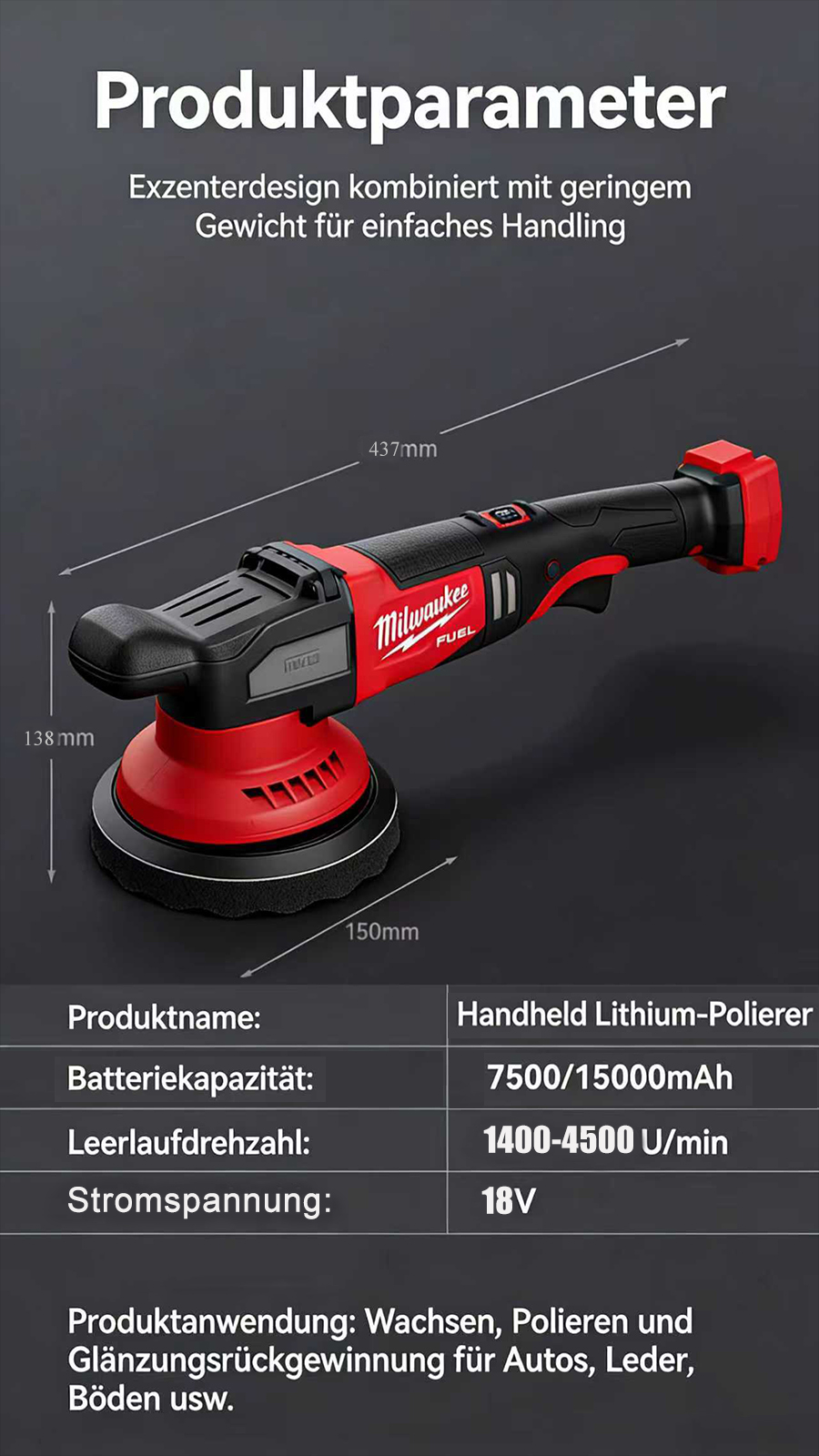 8-stufig einstellbarer, stabiler Motor, eine professionelle Wahl, einfach zu montieren.Kabelloser Polierer: Befreien Sie sich von den Einschränkungen von Kabeln, reparieren Sie Kratzer gründlich und polieren Sie fein in einem Schritt.