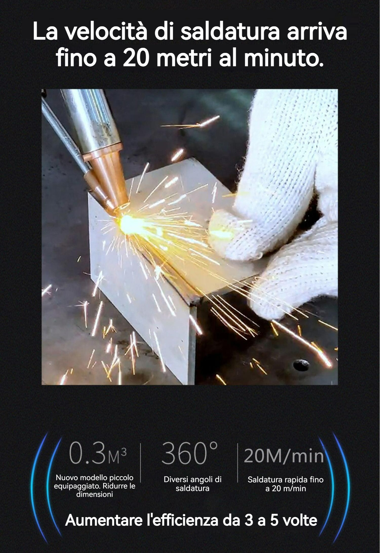Saldatura facile senza filo di saldatura, velocità di saldatura fino a 13 m/min, versatile e adatta a un'ampia gamma di applicazioni di saldatura.